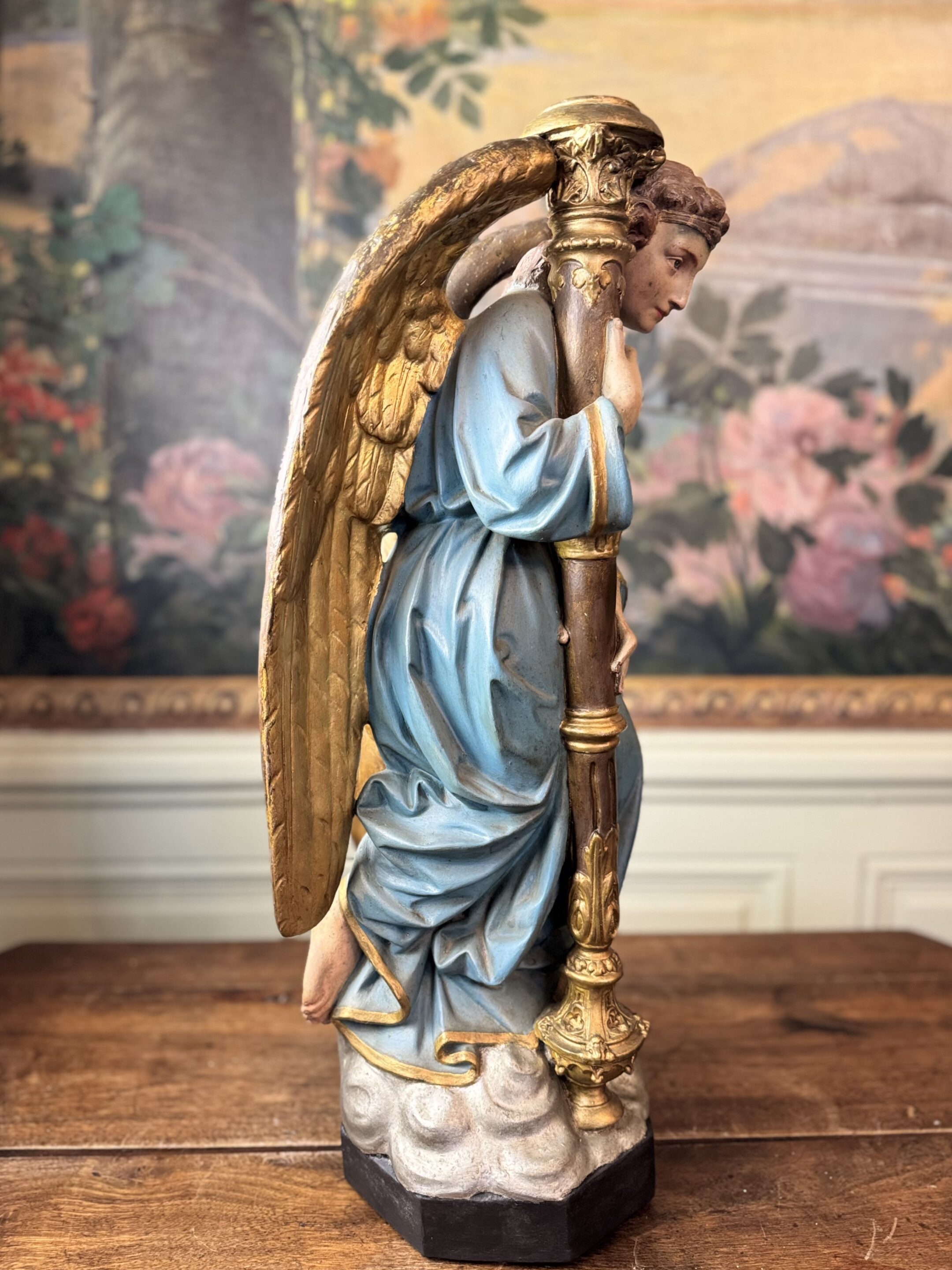 La Galerie Le Jardin Des Moines, antiquités religieuses et art Sacré, vous propose un ange céroféraire du XIXe.