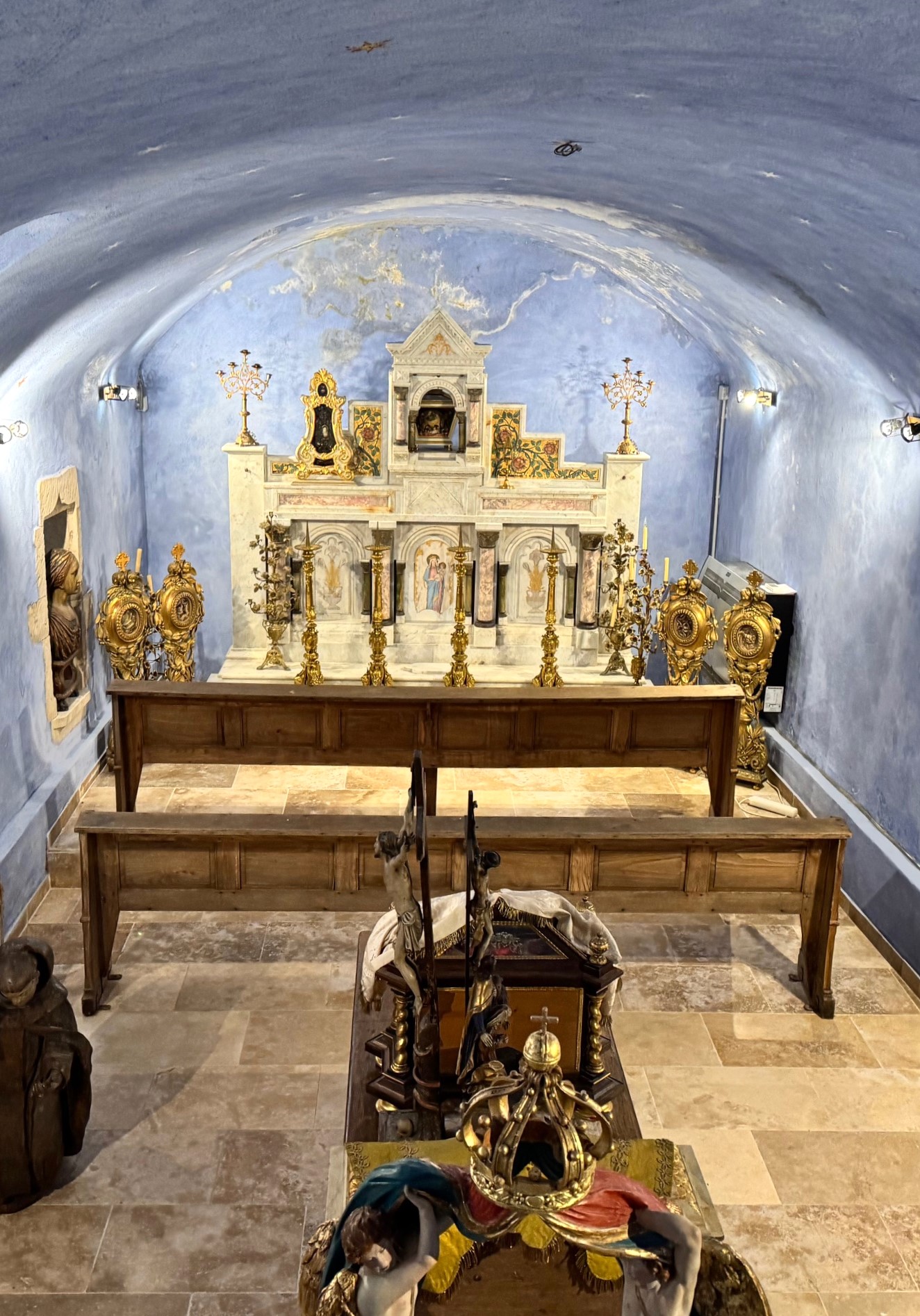 Deux grands bancs de la fin du XIXe ou du début XXe, en bois, provenant d’une chapelle du Rhone.