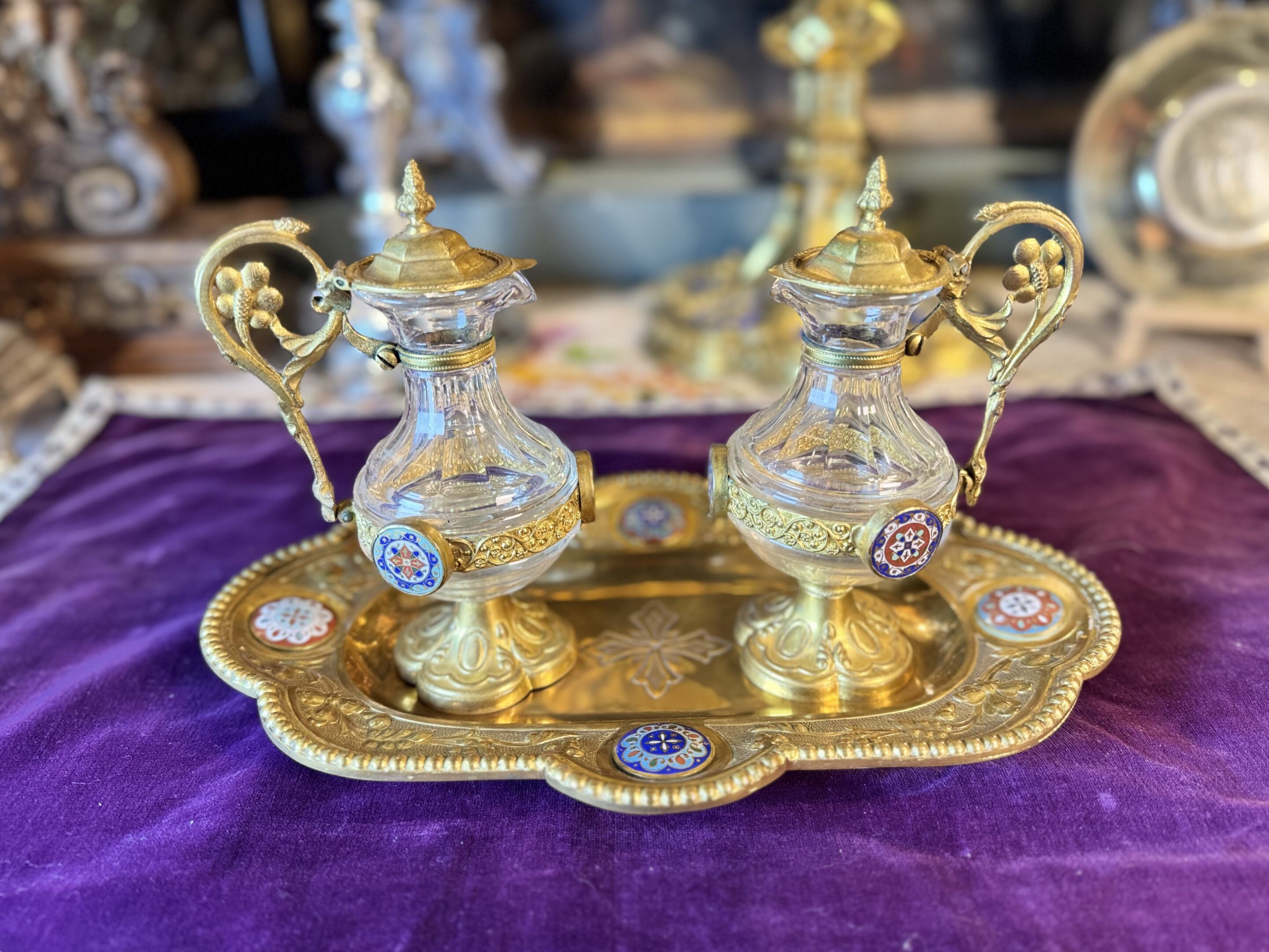 La Galerie Le Jardin Des Moines, antiquités religieuses et art Sacré, vous propose une Paire de burettes et lavabo - XIXe