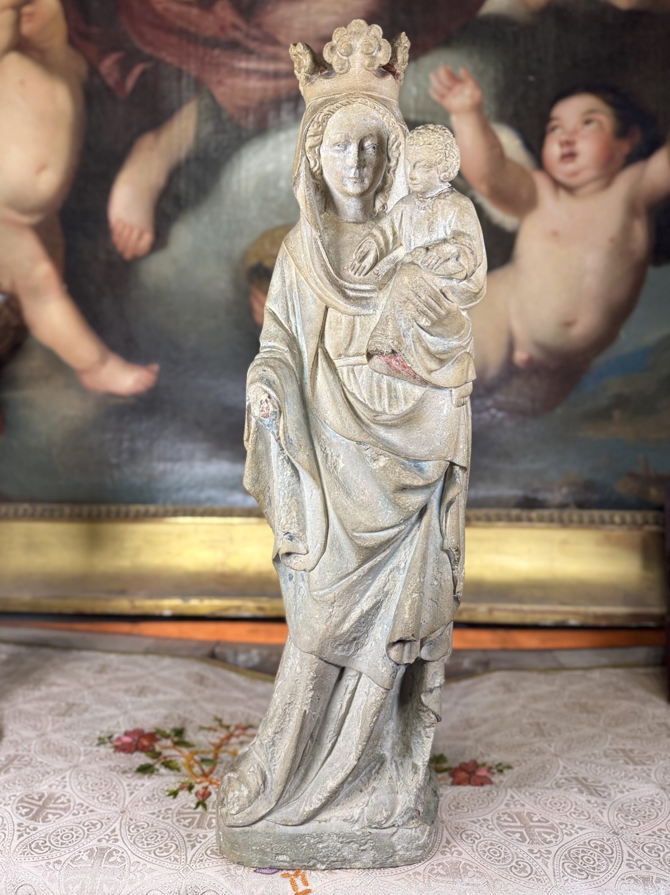 La Galerie Le Jardin Des Moines, antiquités religieuses et art Sacré, vous propose une Vierge à l'Enfant